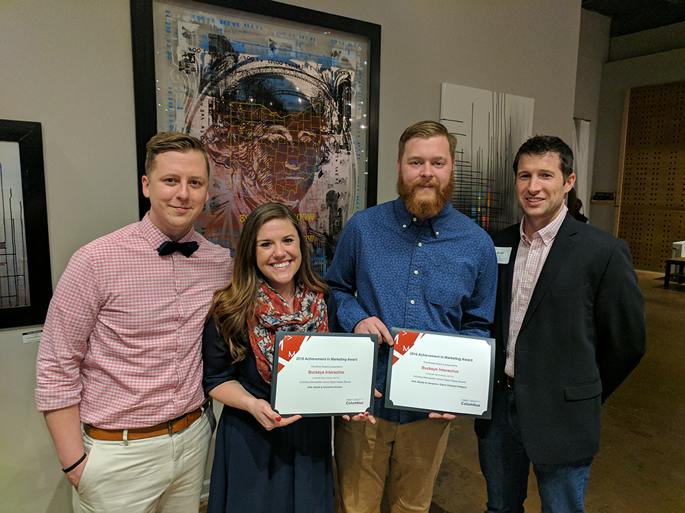 NEW ALBANY, Ohio (February 6, 2017) — The Columbus chapter of the American Marketing Association (AMA) presented two awards to Buckeye Interactive for Achievement in Marketing in 2016. The two awards received were: the Silver Award for the Web, Mobile & Interactive Division and the Bronze Award for the Digital Displays Category. These awards, among others, were announced at the AMA dinner and awards ceremony on Thursday, January 26th.